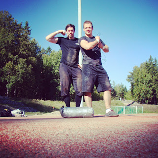 Loved it! Olympic lift movements done with kettlebells and pull-ups to add some spice to the mix. We used the same 32kg bell for the clean & jerks and Toni's new 24kg bell for the snatches. The idea on the second part of the Triplet was to put more focus on upper body. As you probably realized, the first part was a leg killer =) We wanted to have a good bunch of pull-ups and bully on our upper body with those two different kettlebell movements. I believe we succeeded in that goal perfectly. Plus this was a good breather as well. Lifting stuff overhead puts heart rate always high and this was no exception.